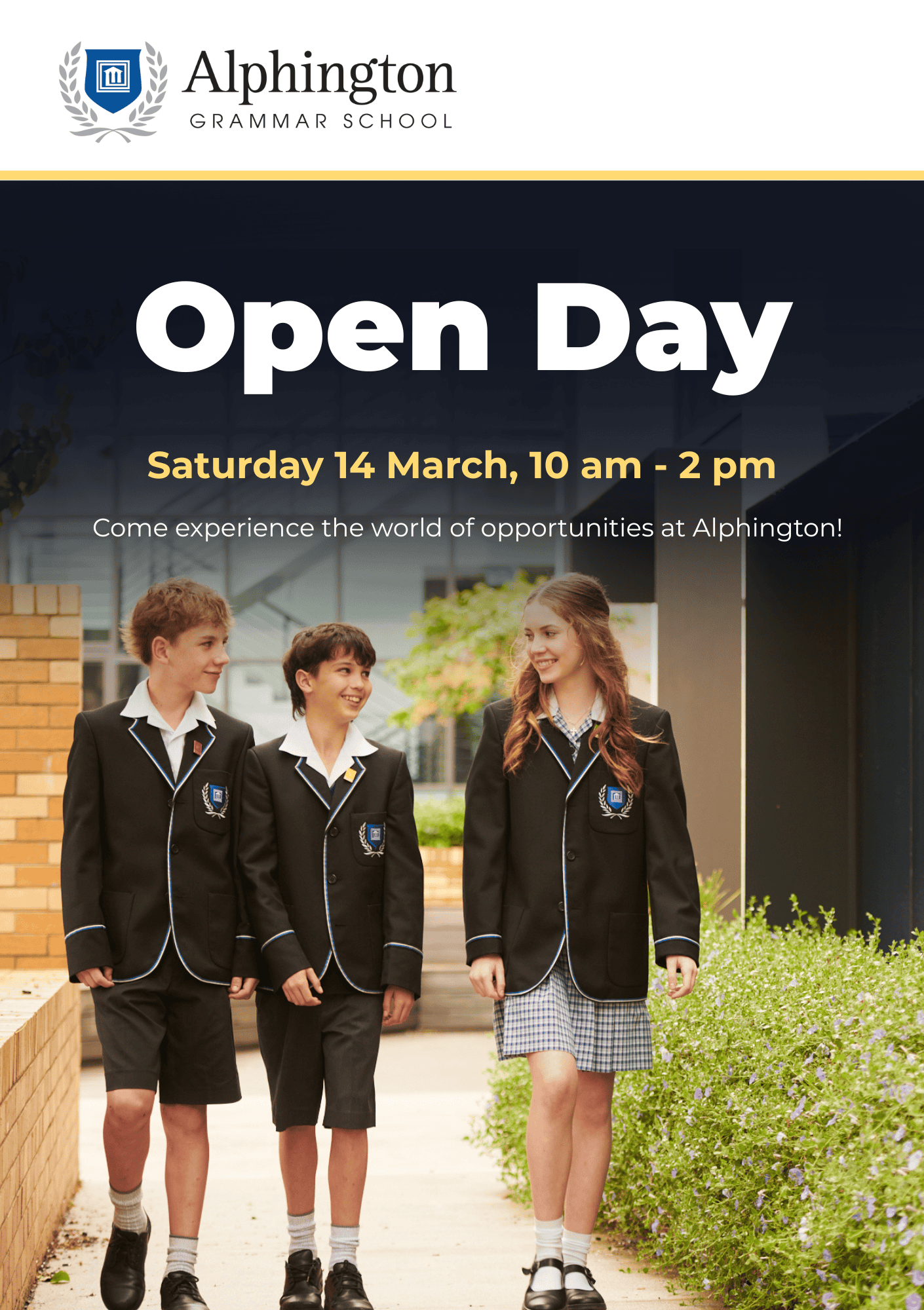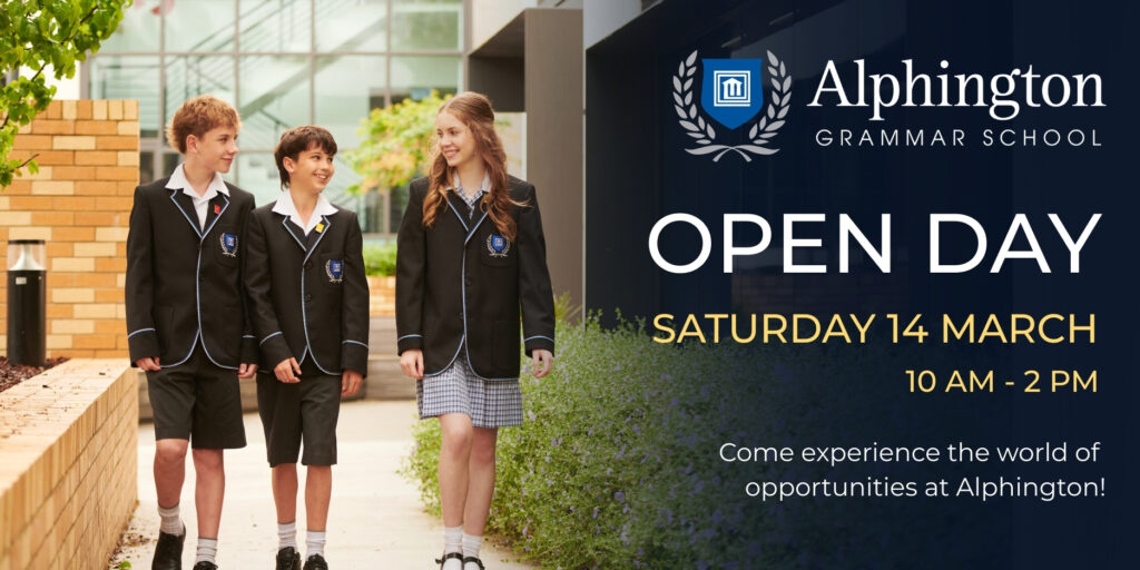 Open Day 2026 Discover what makes our community unique at the Alphington Grammar School Open Day. Join us for an inspiring look into our learning environment, meet our dedicated staff,
